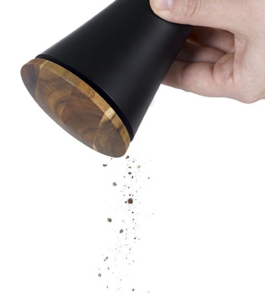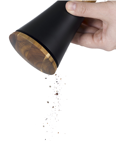 Spin hat eine kegelförmige Bodenplatte mit der sich die Mühle dreht wie ein Kreisel. Das beflügelt nicht nur den Spieltrieb, sondern hat auch eine durchdachte Funktionalität. Der Boden ist die Mahlwerkabdeckung und die Einstellscheibe für das bewährte absolut rost- und verschleißfreie Hochleistungs-Ceramic Mahlwerk CeraCut®. Durch verdrehen der Einstellscheibe wird der Mahlgrad bestimmt und je nach Wunsch rieselt Pulverfeines bis grob Gemörsertes beim Drehen des Griffs über die Scheibe punktgenau auf die Speisen. Natürlich lässt sich mit der Mühle Salz oder Pfeffer verarbeiten.