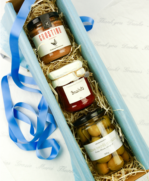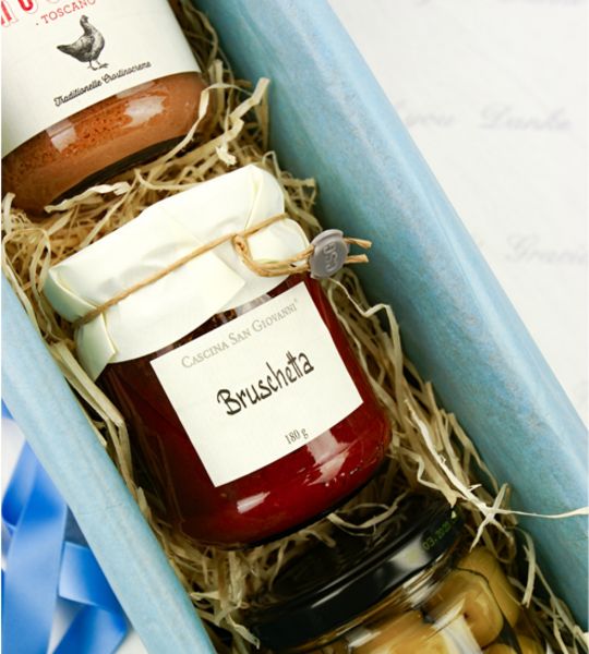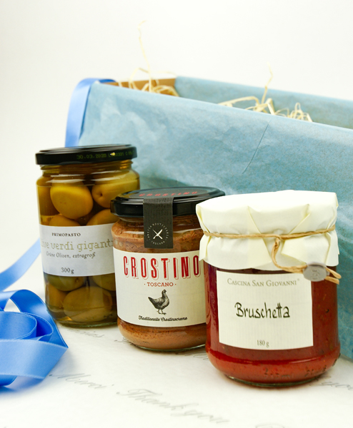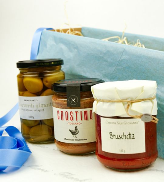 In Spanien heißen sie Tapas und in Italien Antipasti. Kalte oder warme Kleinigkeiten, die vor dem eigentlichen Essen schon mal den Apetit anregen oder auch nur so zum Wein gegessen werden. In dieser Zusammenstellung finden sich mit Oliven, Bruschetta und der klassischen Crema für Crostino Toscano, quasi der Querschnitt durch die italienische Küche. Unser Crostino Toscano wird ausschließlich aus Geflügelfleisch und Geflügelleber gemacht. Es wird wie die Bruschetta, auf warmem Brot serviert.