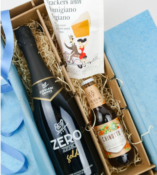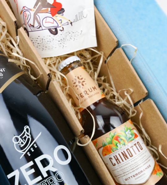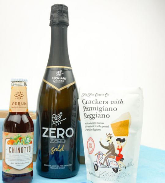 Wir möchten Ihnen das Flair eines Abends in Venedig vermitteln, denn von dort kommt der "Zero Gold" aus dem Hause Cipriani. Angefangen mit "Harry's Bar" steht der Name Cipriani längst als Synonym für erstklassige Küche und italienische Spezialitäten. Auch dieser akloholfreie Sekt passt sehr gut in das hochklassige Sortiment. Die bittersüße Note aus den Chinottorangen im ebenso alkoholfreien Chinotto von Bevipuinaturale macht aus der Kombi einen sorgenfreien Aperitiv im Aperol-Stil. Die Parmesan-Cräcker sind da die perfekte Ergänzung.
