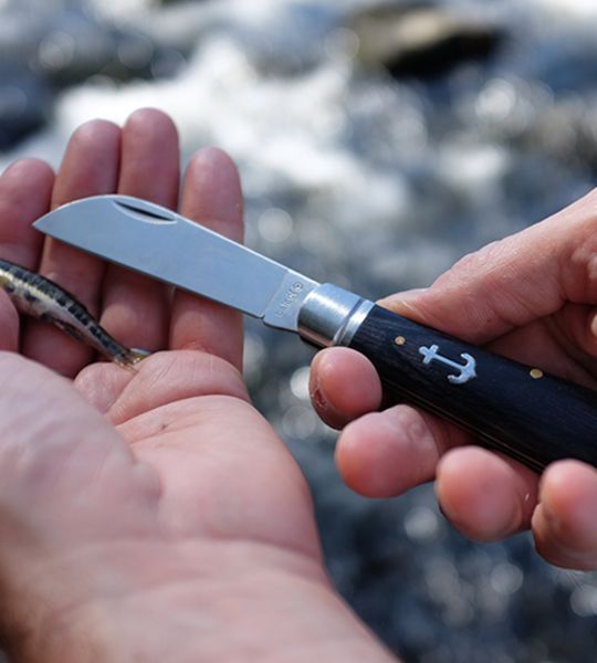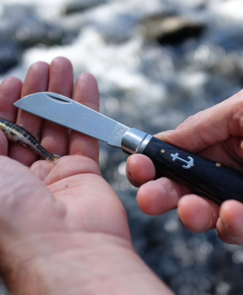 Die Form dieses traditionelen Taschenmessers hat ihren Ursprung in der Bretagne. Dort war es der tägliche Begleiter der Seeleute und Fischer. Dieses schöne Modell ist ganz in diesem Seemannstil gehalten und auch heute ein praktisches Utensil für alle Angler oder Bootsfans. Der Griff aus schwarzem Staminaholz mit dem silbernen Ankermotiv ist auch ein schönes Geschenk für Landratten, die maritimes Ambiente mögen. So oder so, ein sturmerprobtes Taschenmesser mit Geschichte.
