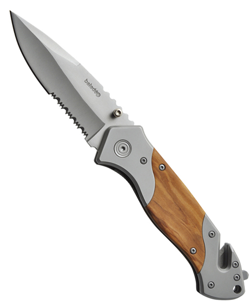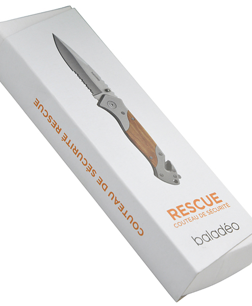 Dieses Messer kann Leben retten. Das Baladéo Securitymesser aus Edelstahl sollten Sie immer im Handschuhfach haben. Damit können Sie sich im Notfall wirklich aus dem Auto befreien. Die stabile Klinge aus Edelstahl ist rostfrei und scharf. In den Griff integriert ist ein Gurtschneider und am Ende des Griffs ist ein Stahlstift, mit dem Sie die Autoscheibe problemlos einschlagen können. Der Griff des „Rescue" ist mit Olivenholz belegt und es wird mit einer Schutzhülle aus RPET geliefert.