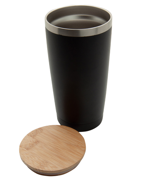 Doppelwandiger Edelstahlbecher mit Bambusdeckel