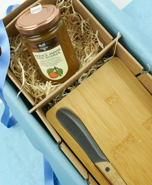 Frühstücksbrettchen mit Buttermesser und Konfitüre