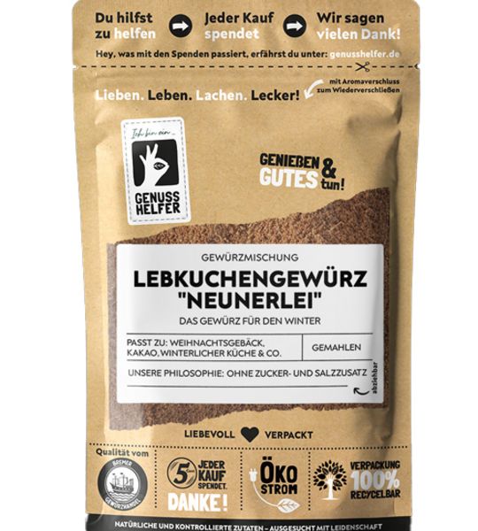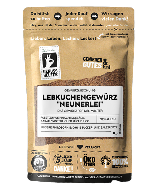 Das Lebkuchengewürz vom Bremer Gewürzhandel schmeckt herrlich süßlich-würzig und durchaus kräftig. Das süße Aroma bringt der hochwertige Ceylon-Zimt an das Lebkuchengewürz. Anis und Fenchel sorgen für eine aromatische Frische und Nelken, Piment und Macisblüte sorgen für die charakteristische, kräftig-würzige Note. Lebkuchengwürz dient nicht nur zum Würzen von Gebäck sondern gibt Müsli und Desserts ein herrlich weihnachtliches Flavour. Probieren Sie mal MIlchreis oder Joghurt mit einem Hauch Lebkuchengewürz, da kommt direkt Weihnachtsvorfreude auf.