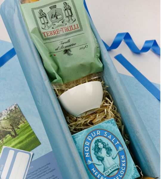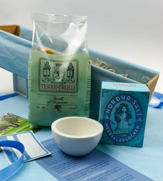 Brot und Salz Classic ist das perfekte Geschenk für die Übergabe einer Wohnung. Schenken Sie symbolisch Glück und Wohlstand mit diesem traditionellen Geschenk. Das Nordur Meersalz wird nur auf Island mit einem einzigartigen Verfahren aus Meerwasser und Geothermik gewonnen. Das „Brot” ist in diesem Fall ein 250 g Päckchen Taralli al Rosmarino, ein vorzügliches Salzgebäck aus Italien. Die passende Servierschale aus feinem Premium-Porzellan von Villeroy und Boch sorgt dafür, dass sich der Beschenkte lange an dieses Einzugsgeschenk erinnert.