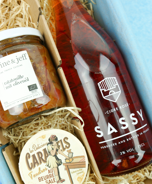 Genießen Sie ein kleines bisschen französisches "Savoir vivre" mit diesem Feinkostgechenk. Wir haben ein paar unübertroffene Klassiker für Sie zusammen gestellt, die zu jeder Jahreszeit einen Schimmer von Sonne auf den Tisch bringen. Der Original Cidre aus der Normandie schmeckt als Aperitif oder als Essensbegleiter gleich gut und die Ratatouille von Karine & Jeff, ist als Vor-oder Hauptspeise genussfertig. Wenn Sie sich dann noch ein Stück Caramel au Beurre salé zum Kaffee auf der Zunge zergehen lassen, sind Sie quasi in Frankreich.