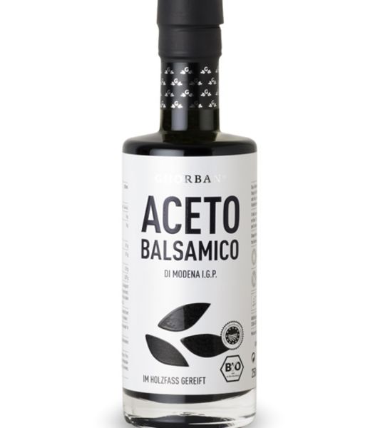 Traditionell in der italienischen Provinz Modena produziert und abgefüllt, überzeugt der Bio Aceto Balsamico durch seine herausragende Qualität. Grund dafür ist die Reifung im Holzfass, die ihm nicht nur seine tiefbraune Färbung sondern auch das dickflüssige, sirupartige Fließverhalten verleiht. Der Ghorban Aceto Balsamico erfüllt den BIO-Standard nach der EG-Öko-Verordnung und ist natürlich frei von Farbstoffen oder Zucker.