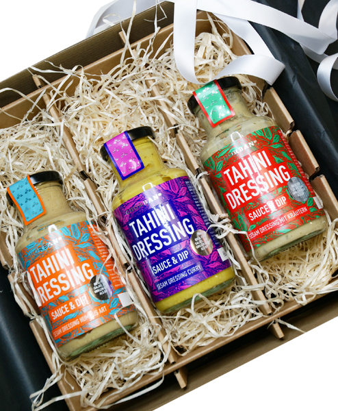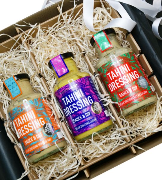Namensgeber für diese Dressings von GHORBAN® ist eine cremige Paste aus Sesamkörnern und Kicherebsen wie sie im Orient fester Bestandteil der Küche ist. Verfeinert mit Balsamico Essig, Kräutern und Fruchtsäften hat Ghorban hieraus Dressings geschaffen, die den Orient geschmacklich mit den Oxident verbinden. In diesem Geschenkset ist eine Auswahl dieser leckeren verführung. Ein Must-have für jeden Salat und Dipfan.