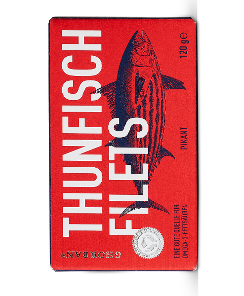 Wie alle Ghorban® Fischspezialitäten sind auch die Thunfischfilets ein Ausnahmeprodukt in Gourmetqualität. Gefangen werden die Fische im Atlantik vor den Küsten Portugals mit Hochseeangeln, ohne Einsatz von Netzen. Die Filets werden in Handarbeit geschnitten und am Stück in die Dosen eingelegt, damit sie ihre schöne Struktur behalten. In dieser leicht pikanten Variante wird im Sud eine Chilischote mitgegart, die eine angenehme Schärfe an das feine Sonnenblumenöl abgibt. Die helle Sauce ist nur vorsichtig gesalzen, damit die Aromen von Fisch und gegrilltem Paprika gut zur Geltung kommen. Die saftigen Filets sind ebenso eine Augenweide wie ein mediterranes Geschmackserlebnis. Probieren Sie die Sauce als Dip mit warmem Brot und die Chilischote ist das Beste überhaupt.