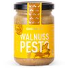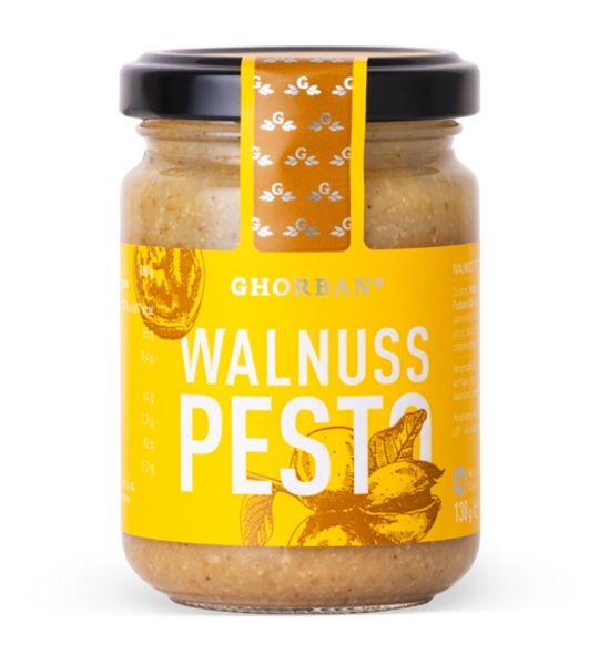 Pesto ist eine geniale Erfindung. Im Mörser lässt sich fast alles zu einer kulinarischen Creme verwandeln und so entstehen durch „pestare" – übesetzt „stampfen" überraschende Köstlicheiten für Brotaufstriche oder Pastasaucen. In diesem Pesto sind Walnüsse und Grana Padano DOP Käse die Grundlage für ein innovatives Superfood. Walnüsse sind nicht nur lecker, sondern reich an guten Ölen und Omega 3 Fettsäuren. Wie alle Produkte der GHORBAN® Pesto Linie, wird auch das Walnuss-Pesto von einem kleinen Handwerksbetrieb mit viel Liebe und nach alter Tradition hergestellt. Einfach kalt unter heiße Pasta mischen oder auf warmes Brot streichen.