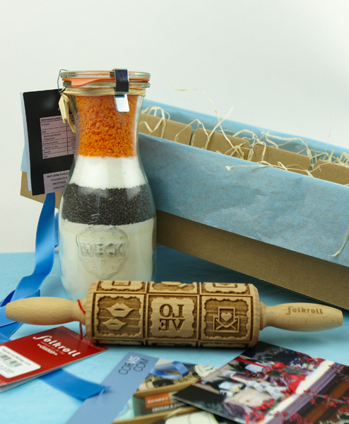 Mit diesem Geschenk macht der Beschenkte Eindruck bei Gästen mit perfekt gestalteten Keksen und Sie prägen mit dem Firmengeschenk Ihr Image. Die Motiv-Teigrollen von folkroll sind bekannt für viele liebevoll ausgearbeitete Motive. Sie geben Kuchenteig eine 3-dimensionale Aussage passend zu jedem Event. Die Anwendung ist einfach und das Ergebnis immer überzeugend. Die Orange Poppy Cookies vom Hof Löbke sind schon für sich ein Hingucker, aber mit Motiv sind sie natürlich noch sensationeller.
