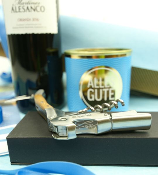 Rotwein, Kuchen und Kellnermesser „Grand Cru"