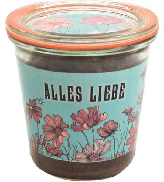Dieser leckere Kirsch-Kuchen im Weckglas wird mit Liebe gebacken und das Etikett sagt das auch. Diese süße Verführung wird mit ein bisschen Kirschwasser verfeinert. Ein wunderbares Mitarbeiter oder Kunden-Geschenk für viele Anlässe. Die Weckgläser sind über Etiketten oder Anhänger personalisierbar. Die Kuchen im Glas haben ein langes MHD