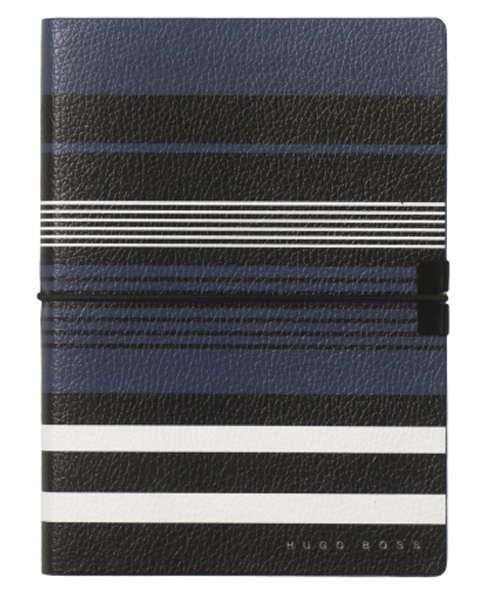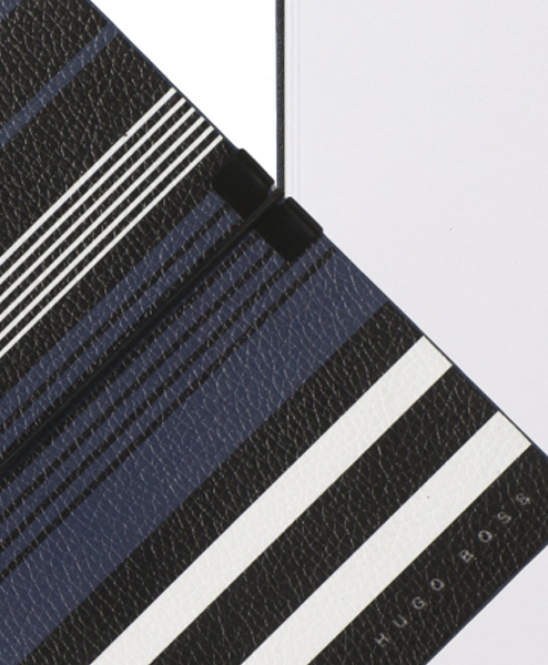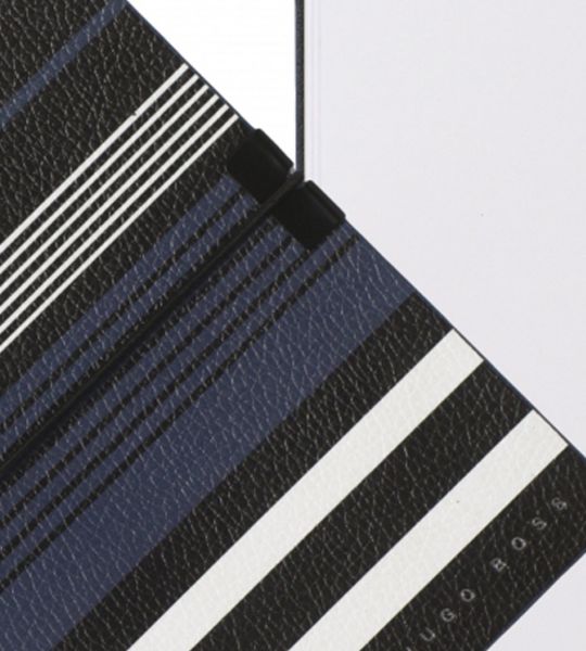 Hogo Boss hat diesem Notizbuch aus der Serie „Soryline” ein Design analog zu seiner Modekollektion gegeben. Die blauen Streifen und die genarbte Textur machen das kleine, praktische Buch zu einem stilvolllen Begleiter und auf den 80 reinweißen Seiten ist viel Platz für Ihre Ideen.