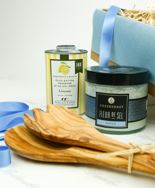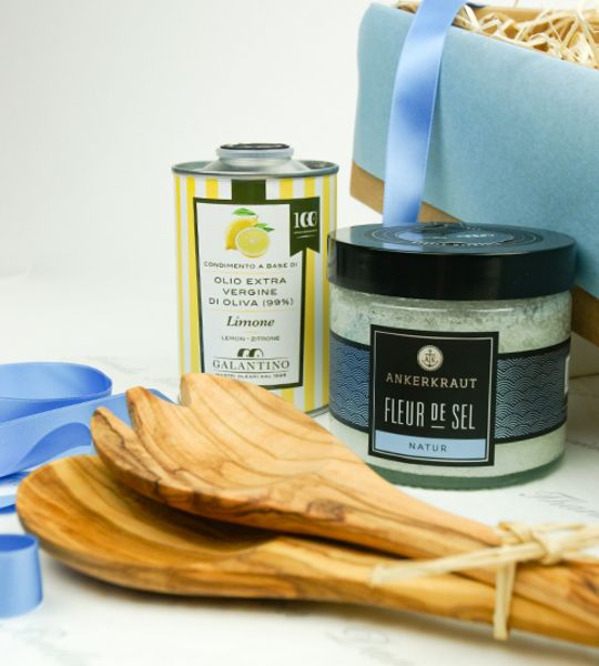 Mit diesem beiden Zutaten zaubern Sie im Handumdrehen einen sommerlichen Salat. Das native Olivenöl extra mit Zitronen duftet so herrlich nach Süden, dass es keine Rolle mehr spielt, welches Wetter gerade draußen ist. Das passende haptische Erlebnis bietet das authentische Salatbesteck aus geschmeidigem Olivenholz. Genießen Sie einfach eine kulinarische Reise in den Sommer.