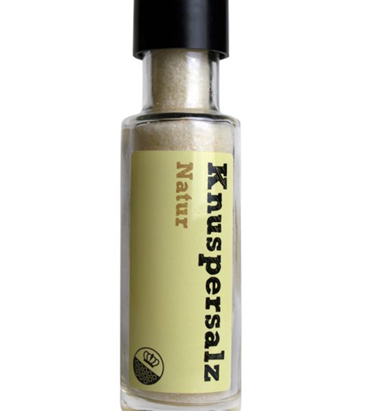 Umweltgeschützt in 800m Tiefe unter Bad Essen liegt ein Urmeer. Dieses weltweit einzige Vorkommen hat einen außergewöhnlichen Mineralgehalt von 31,5%. Das Salz kommt flüssig aus der Erde und wird in einem vom Familienbetrieb ”King of Salt" speziell entwickelten Verfahren kristallisiert. Dabei bleiben alle Mineralien erhalten und geben dem Knuspersalz sein unverwechselbares Aroma. Perfekt mit Olivenöl auf Weißbrot.