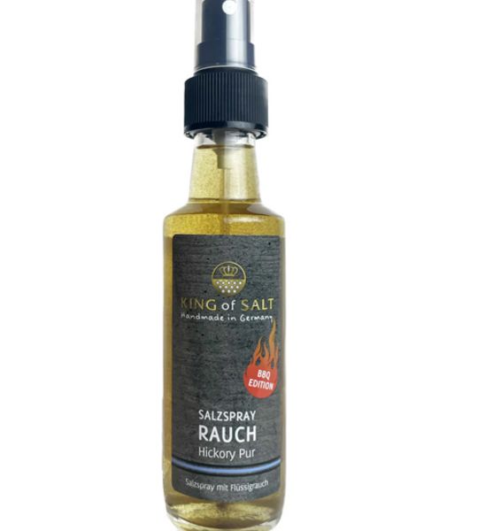 In der kleinen Salzmanufaktur King of Salt, im Osnabrücker Land, wird in Handarbeit aus weltweit einmaligem Urmeerwasser Salz hergestellt. Diese kostbare Flüssigkeit ist 200 Mio. Jahre alt, liegt in 800 Metern unter der Gemeinde Bad Essen und war noch nie Steinsalz. Bei den besonderen Geschmackskompositionen kommen nur Zutaten aus der Natur zum Einsatz – Aromen, Extrakte oder künstliche Zusätze haben hier keinen Platz. Wir haben für Sie ein besonders würziges Salzspray mit natürlichem Rauch aus amerikanischem Hickory-Holz ausgewählt, welches allen Speisen eine geräucherte Note verleiht.