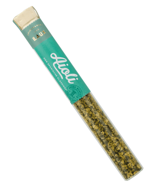 Aioli ist ein Klassiker der spanischen Küche. Mit dieser Gewürzmischung aus getrocknetem Knoblauch, Petersilie und Pfeffer können Sie im Handumdrehen leckere eine tolle Aioliecreme mischen. 1 Teelöffel der Mischung mit etwas Wasser ziehen lassen und unter Mayonaise oder Joghurt mischen. Natürlich ist die Mischung auch mit Salz vermahlen ein tolles Gewürz für alle Marinaden und Dips mit mediterranen Flair.