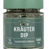 Die Kräutermischung ist ohne Knoblauch und ideal für würzige Dips zu Ofenkartoffeln, Salaten oder Gemüse. 3 Teelöffel des Dips kurz mit etwas heißem Wasser ziehen lassen, dann mit 100 g Crème fraîche oder Olivenöl verrühren.