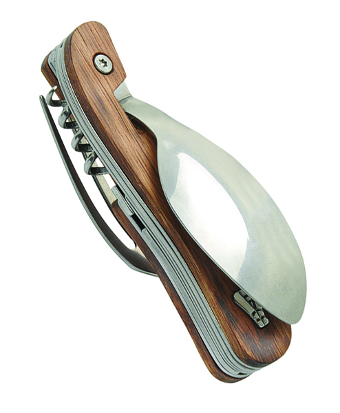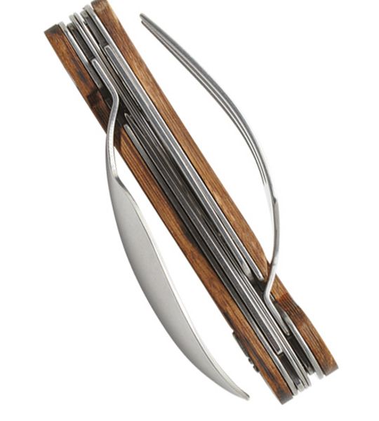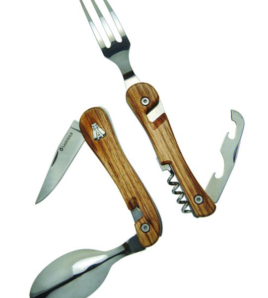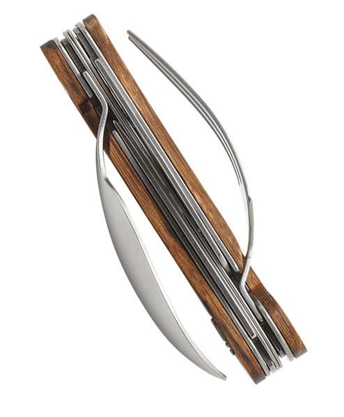 „Tradition” ist ein durchdachtes Outdoor-Besteck von Baladéo. Es ist durch die Klapptechnik wunderbar klein zu verstauen und bietet alles, was man in der freien Natur für ein solides Picknick braucht. Die schönen Griffe aus Eschenholz offenbaren insgesamt 6 Funktionen. Neben Gabel und Löffel, ein wirklich scharfes Messer, einen Korkenzieher, Dosenöffner und Kapselheber. Nach Gebrauch hält ein Magnet beide Griffe wieder zusammen. Das Besteck vereint die Schönheit eines modernen Designs mit klasischer Funktionalität.