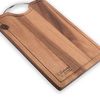 Massives Tranchierbrett aus Akazienholz mit Saftrand und Metallgriff, 25 x36 x 2 cm