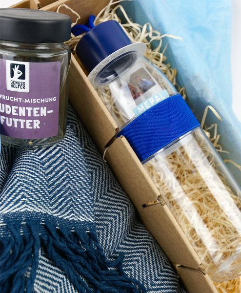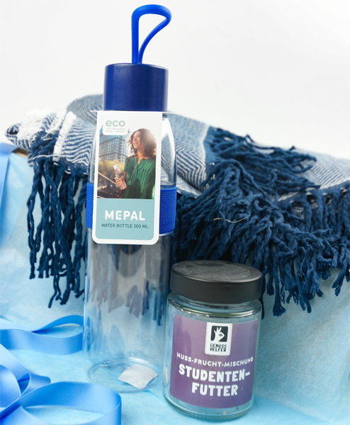 Wir wissen nicht, wo Ihr Lieblingsplatz ist. In diesem Geschenkpaket sind zwei schöne und praktische Begleiter, mit denen Sie jeden Ort zu Ihrem Lieblingsplatz machen können. Die stabile und auslaufsichere Trinkflasche von Mepal hat eine praktische Trageschlaufe und sorgt für Erfrischung. Das weiche Plaid aus wärmendem Acrylstrick sieht nicht nur edel aus sondern ist die perfekte kuschelige Unterlage.
