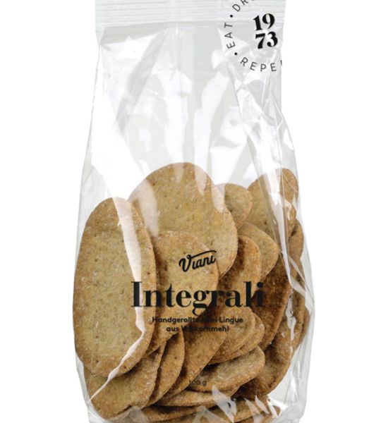 Mini-Schwiegermutterzungen sind ein traditionelles, handgefertigtes Gebäck aus dem Piemont. Die flachen Scheiben erinnern in der Form an Zungen und so haben sie ihren Namen bekommen. Das herzhafte Gebäck aus Weizenmehl wird mit Olivenöl und Salz hergestellt. Man kann es in alle denkbaren Dips tauchen oder einfach pur zu Wein genießen. Diese Varinante aus Vollkornmehl hat besonders viel Geschmack.