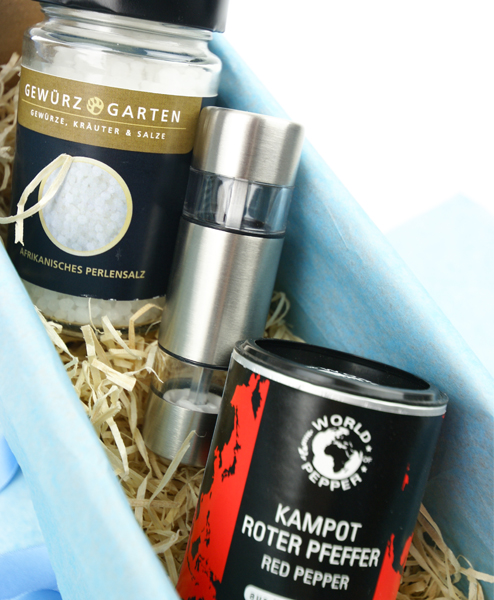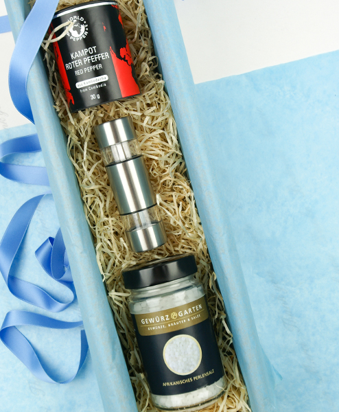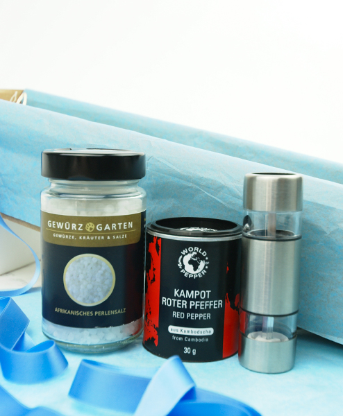 Was ist ein schöne Brotzeit oder ein Picknick ohne Salz und Pfeffer? Mit dieser kleinen aber kräftigen Taschenmühle aus Acryl haben Sie beides einfach griffbereit in einem Objekt. Weil wir natürlich möchten, dass jeder Dreh mit der Mühle besonders ist, liefern wir einen außergewöhnlichen roten Kampotfeffer für die eine Seite und ebenso exklusives Perlensalz aus der Kalahariwüste für die andere Seite mit. So nimmt Sie die kleine Mühle direkt mit auf eine Gewürzreise.