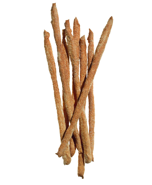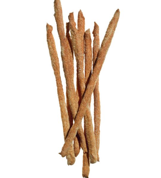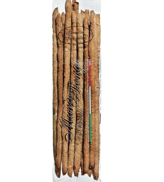 Die handgezogenen Grissini werden zum Schluss mit etwas Granito-Mehl bestäubt, was ihnen das rustikale Aussehen verleiht. Sie sind etwas kürzer und fester als die normalen Grissini, das wiederum macht sie stabiler. Mario Fongo ist ein Traditionsbäcker im Piemont. Aus einer Dorfbäckerei entstand die inzwischen weltweit berühmte Produktion für Aperitivo-Gebäcke.