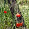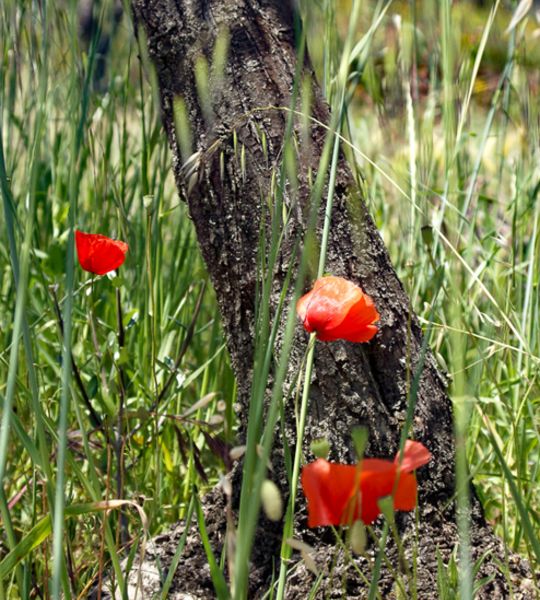 Mohnblumen im Mai unter Olivenbäumen