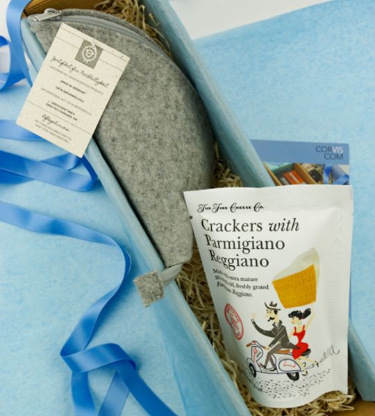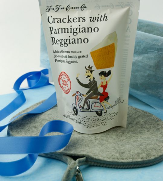 Das Geschenkpaket „Mouse on the run" wird nicht nur Außendienstmitarbeiter begeistern, sondern auch die, die jetzt einen Teil der Woche im Büro und den anderen im Homeoffice arbeiten. Ganz zu schweigen von denen die sich auch im Urlaub nicht von der Technik trennen können. Das innovative Mouseetui von Filzmaxx ist aus echtem Wollfilz und schützt die Mouse (oder anderes Zubehör) zuverlässig vor Stößen und Kratzern. Aufgeklappt ist es ein komfortables Mousepad. Der Filz ist in vielen Farben erhältlich und für Ihr Unternehmen personalisierbar. Die leckeren Cracker Parmesan vertreiben artgerecht den Hunger auf Reisen.