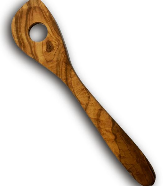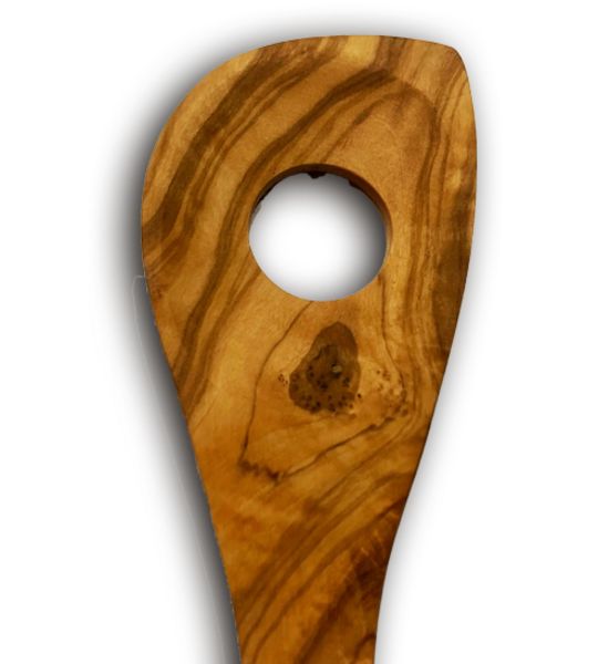 Der Löffel wird aus einem Stück gefertigt und nicht geleimt. Er ist so gearbeitet, dass er gut in der Hand liegt. Aufgrund der handwerklichen Verarbeitung kann jedes Stück etwas anders ausfallen. Die Maserung macht ohnehin jeden Löffel zum Unikat. Olivenholz ist hitzebeständig, wasserfest und sehr gut für Lebensmittel geeignet. Für Tauchgänge in der Spülmaschine ist es aber nicht gedacht. Einfach feucht abwischen und ab und zu mit Olivenöl nachölen.