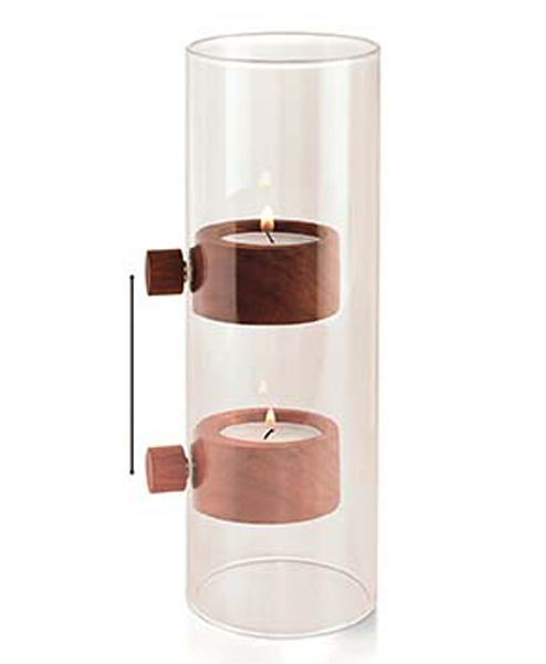 So schön kann ein Teelicht schweben. In dem mundgeblasenen Glaskolben wird der Halter aus edlem dunklem Holz durch zwei Magnete gehalten. Von außen lässt er sich beliebig vom Boden bis auf 20 cm Höhe verschieben. Das ist nicht nur ein überraschend innovativer Effekt, sondern gibt auch vielfältige Möglichkeiten für Ihr immer neue Tischarrangements