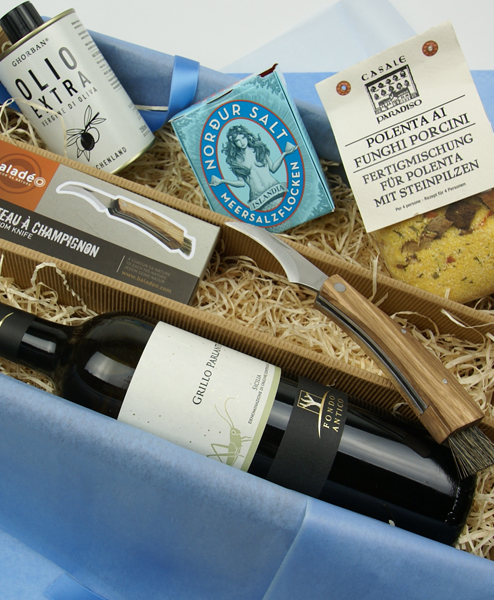 Geschenkbox mit Baladéo Pilzmesser und Feinkost