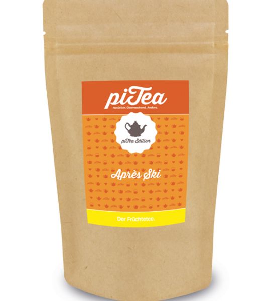 Stress aus und Kaminfeuer an. Après Ski versetzt Sie mit dem Duft seiner Zutaten wie Apfelstücke, Hibiskusblüten, Orangenschalen und Zimt in einen Wintertraum.piTea steht für innovative Teemischungen, mit denen man nicht unbedingt rechnet und auf die man, wenn man sie erst einmal kennengelernt hat, auf keinen Fall mehr verzichten möchte. Die Mischungen sind aber nicht nur außergewöhnlich lecker, sondern bei den Zutaten wird auch auf 100% Natürlichkeit geachtet.