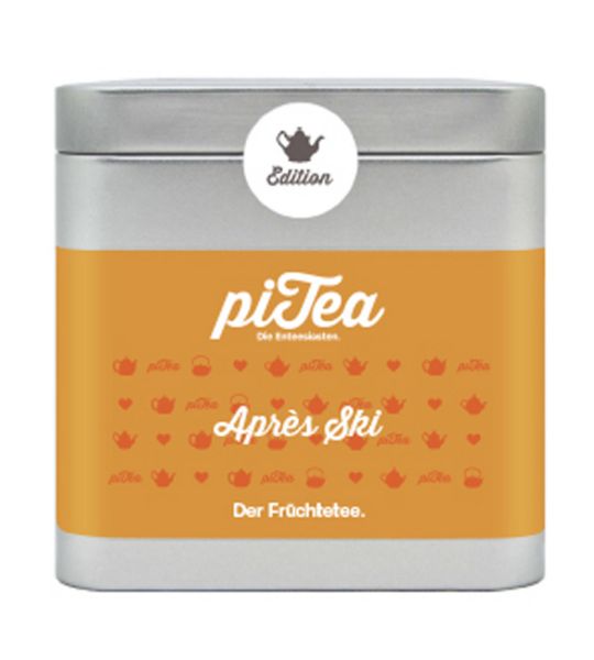 Après Ski versetzt Sie mit seinem Duft nach Zimt und Orange in die gemütliche Stimmung einer Skihütte. Die Teedose, auch kleine Teestation genannt, liefert gleich noch lose Beutelchen und Holzsticks mit, damit Sie Ihren Tee überall perfekt aufgießen können. piTea steht für innovative Teemischungen, mit denen man nicht unbedingt rechnet und auf die man, wenn man sie erst einmal kennengelernt hat, auf keinen Fall mehr verzichten möchte. Die Mischungen sind aber nicht nur außergewöhnlich lecker, sondern bei den Zutaten wird auch auf 100% Natürlichkeit geachtet.