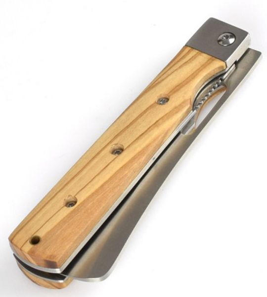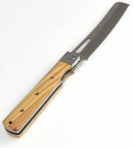 Wie sein großer Bruder macht auch dieses Brotmesser jedes Abenteuer mit. Die robuste, scharfe Klinge hat mit 10,5 cm etwas weniger Länge und nimmt daher auch weniger Platz in Ihrer Ausrüstung in Anspruch, trotzdem kann man damit ein ordentliches Brot schneiden. Die hochwertige rostfreie Edelstahlkinge aus 440er Stahl mit Wellenschliff lässt sich einfach in den Griff aus Olivenholz einklappen und somit sicher verstauen. Absolut unikates und unerlässliches Camping-must-have. Das „Bread Knife" ist aber nicht nur praktisch und sicher, sondern auch noch hochwertig und sehr schön. Jedes Messer ein Unikat mit individueller Maserung.