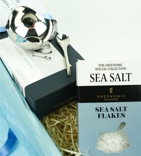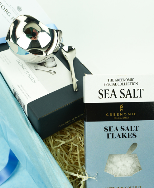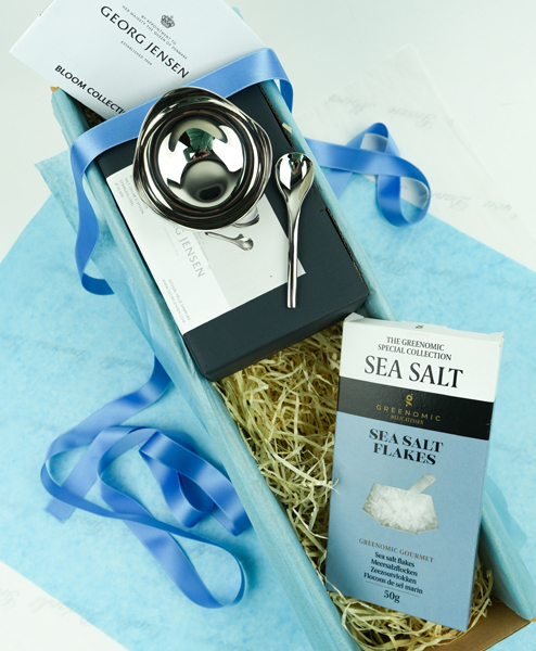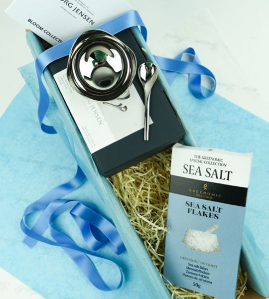 Geschenkbox mit Georg Jensen Salzschale und Meersalaz