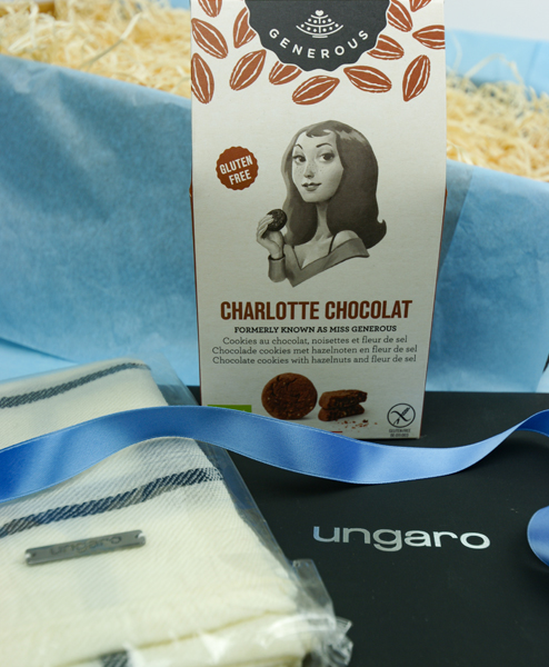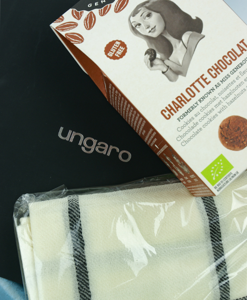Sie möchten zu einem neuen Cabrio gratulieren oder gute Wünsche für eine Reise mit leichter Brise mitgeben, zum Beispiel auf einer Jacht? Dann ist das Ihr perfektes Geschenk. Natürlich macht der zeitlose Schal von Ungaro® auch an jedem kühlen Abend eine elegante Figur. Je nach Geschmack ist der Schal auch in Anthrazit mit hellen Streifen erhältlich. Die exzellenten Bio Schoko-Butterkekse sind perfekte Reisebegleiter, zumindest soweit sie kommen.