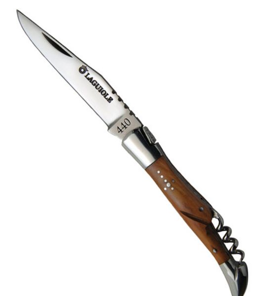 Das ultimative Survival-Kit für Outdoor-Weingenießer. Dieses Taschenmesser hat eine extra-scharfe 11cm Klinge aus rostfreiem 440er Edelstahl und einen Korkenzieher. Der Griff aus Olivenholz sorgt für eine schöne Haptik und macht mit seiner unverwechselbaren Maserung jedes Messer zum Unikat. Zwei geschmiedete Edelstahlkronen machen es zudem besonders stabil. Das Messer ist ganz der in er Form der traditionellen französischen Hirtenmesser.