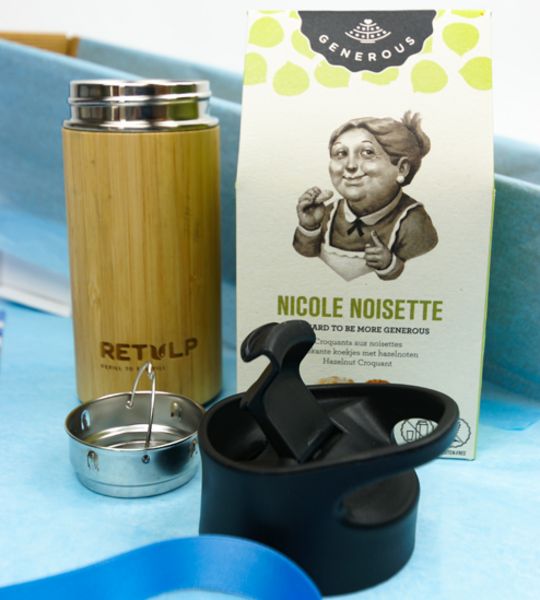 Tee aufgießen und warten war gestern. In diesem cleveren Tee to go Teezubereiter können Sie ihren heißen Tee oder die kalte Infusion im Handumdrehen ansetzten und einfach mitnehmen. Der praktische Sicherheitsdeckel mit Trinköffnung verhindert Verschütten in der Bewegung. Für die kleine Pause im Auto, Büro oder beim Sport liefern die Bio Nussmakronen von Nicole Noisette genussvolle Energie. Zudem tun Sie mit dem Retulp „Tea to go” noch Gutes für die Umwelt.