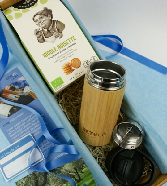 Geschenkset mit Teebereiter und Bio Nuss-Gebäck