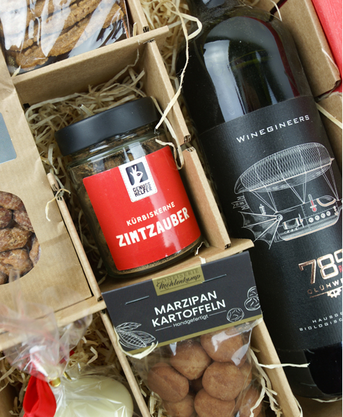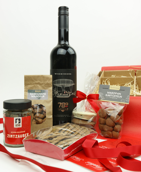 Mit diesem Feinkostpaket machen Sie jedem Team eine große Freude. Wir haben die Zutaten so gewählt, dass alles zu teilen ist und der Glühwein genügt sicher für eine gesellige teambildende Runde. Die Knabbereien sind aus Süßem mit weihnachtlichem Flair zusammen gestellt und werden von den gebrannten Mandeln gekrönt. Den Glühwein gibt es übrigens auch als alkoholfreie Punsch Variante.