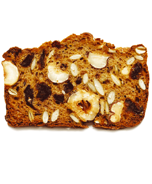 Dieses dünn geschnittene, getoastete Brot aus England besitzt einen satten Duft nach guten Haselnüssen. Es ist eine aromatische Unterlage für Konfitüren, Cremes, Weich- und Frischkäse. Datteln und Kürbiskerne ergänzen den reichen Geschmack. Das Brot ist so sensibel getoastet, dass es nicht splittert, aber schön im Mund knuspert.