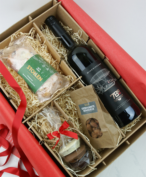 Glühwein, Christstollen, Gebrannte Mandeln und Lebkuchen versüßen uns einfach alle Jahre wieder die Vorweihnachtszeit. Sicher liegt der Reiz dieser kulinarischen Verführung auch in ihrer limitierten Verfügbarkeit. Mit diesem Genusspaket kann der Beschenkte auf jeden Fall alles genießen, was die Jahreszeit an Highlights zu bieten hat. Den Glühwein gibt es auch als alkoholfreie Punch Variante.