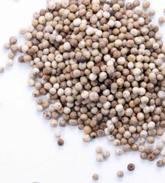 Seine Farbe bekommt weißer Pfeffer weil durch Waschen die Schale und das Fruchtfleisch abfallen und nur der helle Kern übrig bleibt, der dann durch Trocknung in der Sonne noch weiter bleicht. Weißer Pfeffer ist intensiver als schwarzer Pfeffer aber im Geruch eher dezent. Er passt gut zu Fisch, Meeresfrüchten oder hellen Suppen.