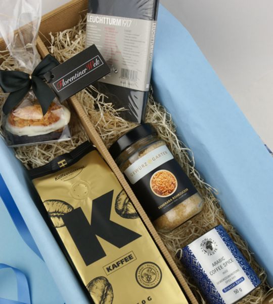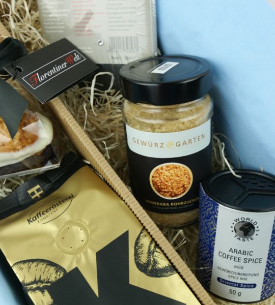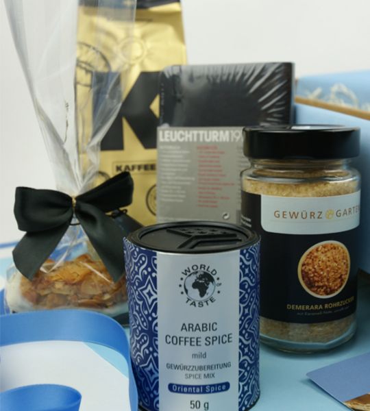 Was brauchen Sie, um in Ruhe nachzudenken? Zeit, etwas Leckeres und einen guten Kaffee? Die Zeit müssen Sie sich nehmen, alles andere ist in diesem Paket. Die einzigartigen handgemachten Mini-Florentiner liefern den Treibstoff für die grauen Zellen, der Bio-Espresso sorgt für Schwung und der original Reporterblock ist perfekt, um Ihre Gedanken festzuhalten. Für das Quäntchen Luxus haben wir noch das arabische Kaffeegewürz und den Demarara-Rohrzucker beigelegt.